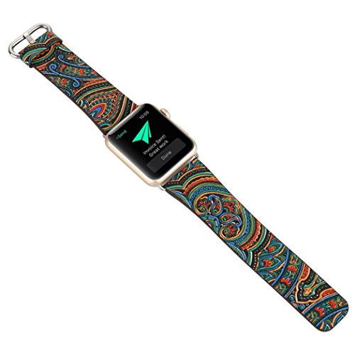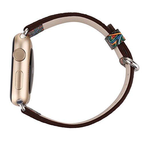 -. Binding : Apparel -. Brand : Alonea -. Department : unisex-adult -. Feature : Softness is moderate, wear very comfortable / Compression molding, sturdy and durable / The size can be adjusted according to the circumstance of individual wrist / Compatible For Apple Smart Watch 1/2 38mm OR 42mm / Suitable wrist 160-225MM -. ProductGroup : Apparel -. ProductTypeName : ACCESSORY -. Size : One Size -. Title : Alonea 38mm 42mm Folk-Custom Leather Strap Replacement Watch Band For Apple Watch