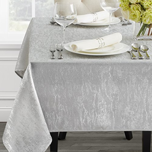 Metals Metallic Tablecloth (60" x 104" Rectangular, Ivory-Silver)