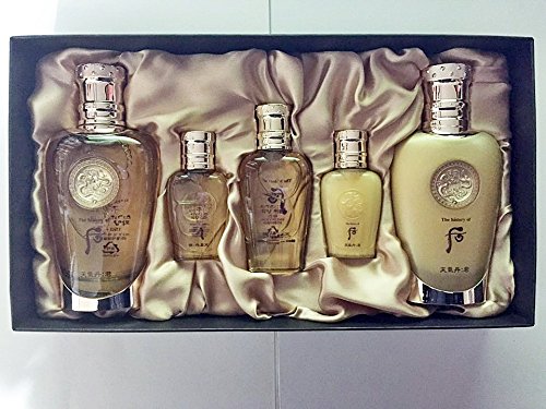 -. Binding : Misc. -. Brand : The History of Whoo -. EAN : 8801051601114 -. Feature : Cheongidan Kun Haw Yang Skin 150ml + 20ml / This is man's premium skin toner from korea ancient aesthetic wisdom. It revitalizes man's skin which is tired from lack of Yang energy / and so keeps the skin glowing. It soothes the skin after shaving and provides non-sticky moisture, and completes a healthy skin texture. / Cheongidan Kun Haw Yang Lotion 110ml + 20ml / This is man's premium skin lotion from korea ancient aesthetic wisdom. Its nourishing touch like highly enriched essence wraps the skin gently and keeps the skin smooth and elastic for all day long. -. ProductGroup : Beauty -. ProductTypeName : BEAUTY -. Title : The History of Whoo Whoo Cheongidan Kun Hwa Yang Special Gift Set (Skin, Lotion, Perfume)