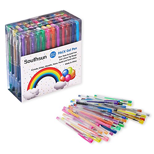 -. Feature : A variety of 60 Colors Gel Pens: 12 Glitter, 10 Metallic, 6 Neon, 9 Pastel, 6 Swirl, 5 Classic, 12 Glitter-neon / Thick and opaque ink, can create a bolder, more controlled lines on dark surfaces than ballpoint or felt tip pens. / 0.6-1.0mm tips provide free-flowing, smooth gliding, no smearing or bleeding in adult coloring book. / Pens are stored in 5 convenient organizer trays with individual spots to hold each pen, so you can keep all your pens neatly organized and ready for use. / A fun and skilled way to use in the greeting cards, party invites, letters to friends and family, arts and crafts, decoration, day care activity, scrap booking.