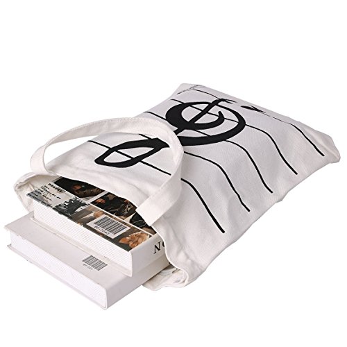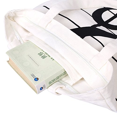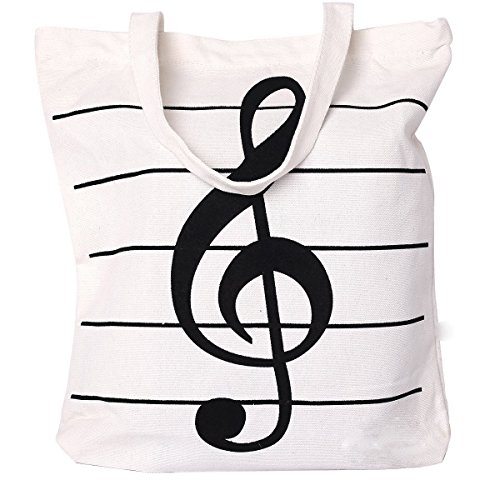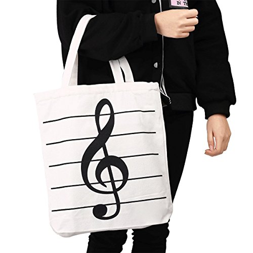 Cavas bag, OPOCC Women Girl's Music Symbol Cotton Canvas Tote Shopping Handbags Shoulder Bags with 2pc free pencil gift. (Music Symbol White)