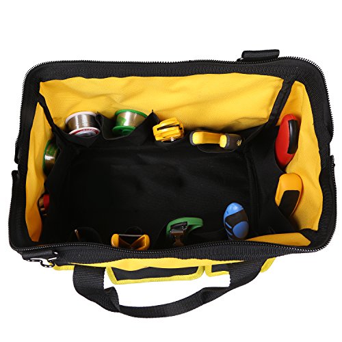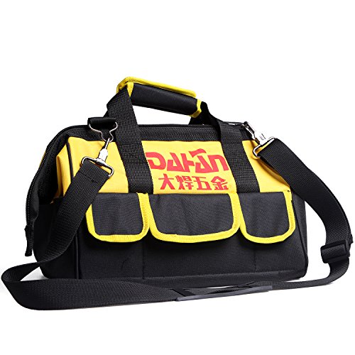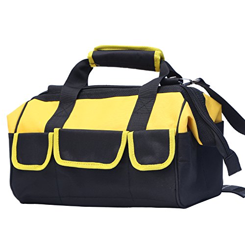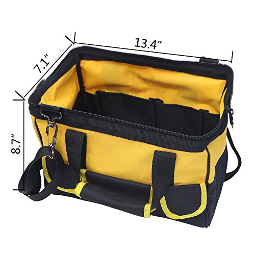 Multi Function Waterproof Oxford Wide Mouth Tool Storage Bag Organizer Heavy Duty Large Handbag with Adjustable Single Shoulder Strap for Home Maintenance Repairs Toolkit (13.4 x 7.1 x 8.7 inch)