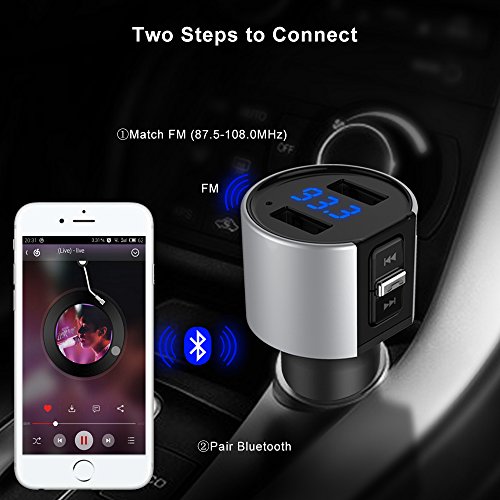 - WIDE COMPATIBILITY: Bluetooth Car FM Transmitter can be paired as a hands-free kit with all Bluetooth enabled devices, such as iPhone, iPad, Tablet, Samsung, HTC, Sony and other Andriod Smartphones; Stream music and calls directly from your mobile devices to car stereo system via FM radio signal( 87.5-108.0MHz).