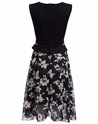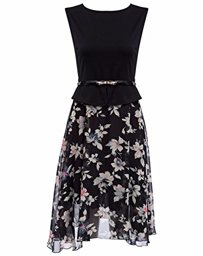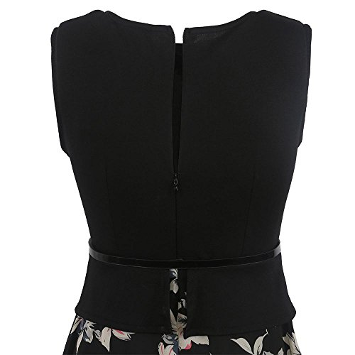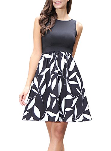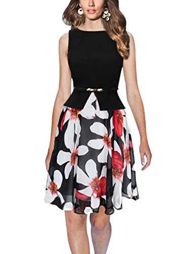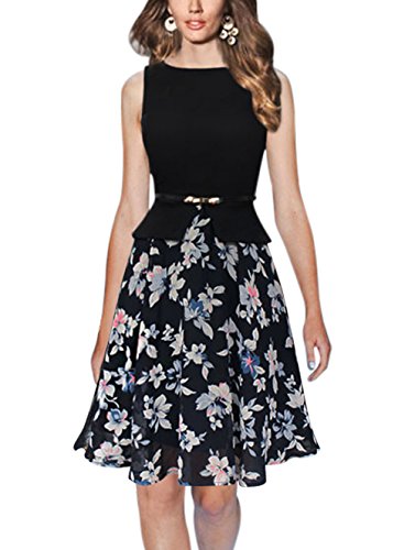 1950's style,stretchy floral print swing a-line dress high waist.