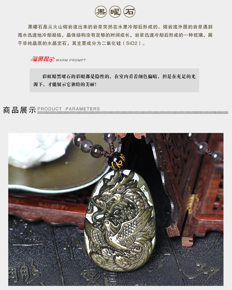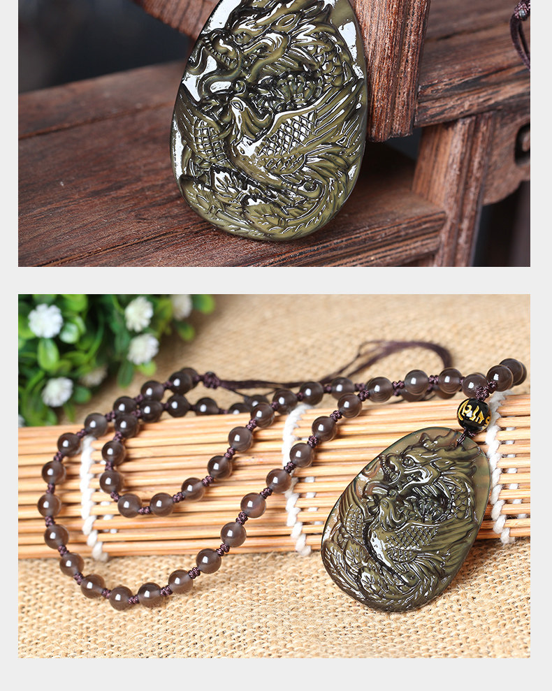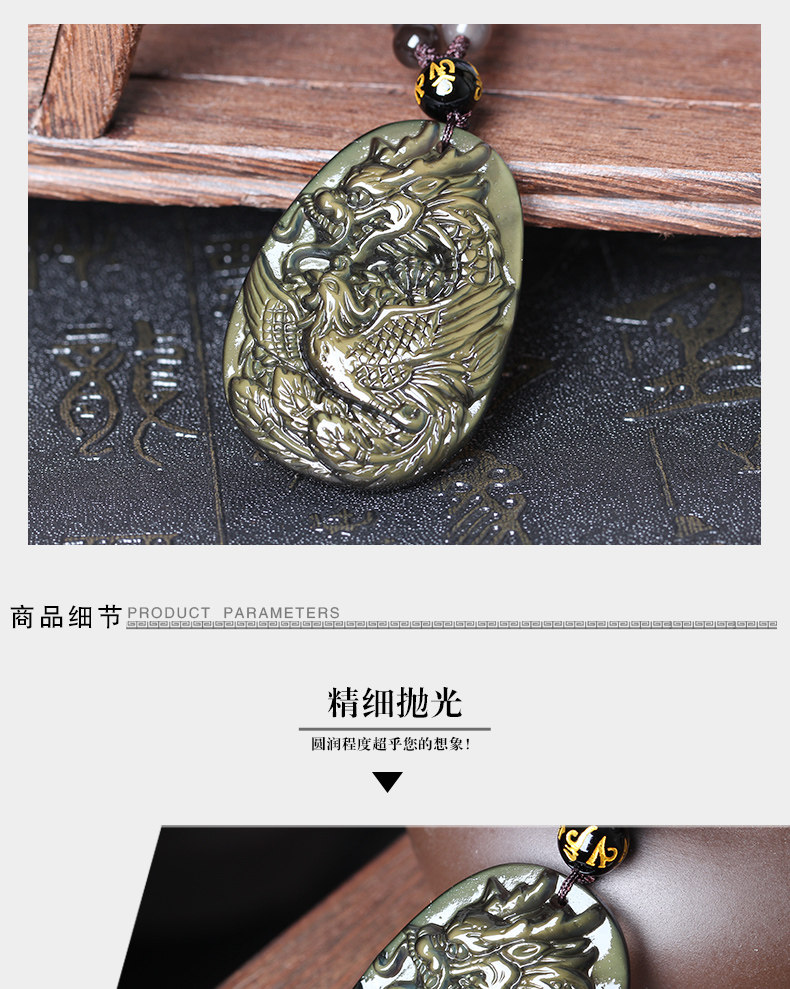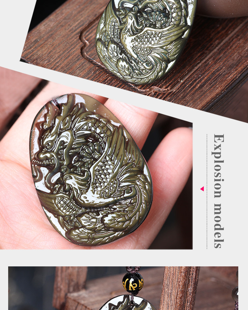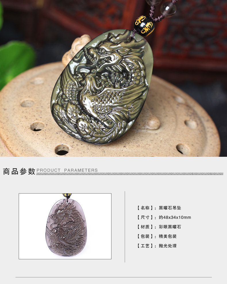 开光吉祥物冰彩彩黑曜石龙凤鸳鸯姻缘扣吊坠
