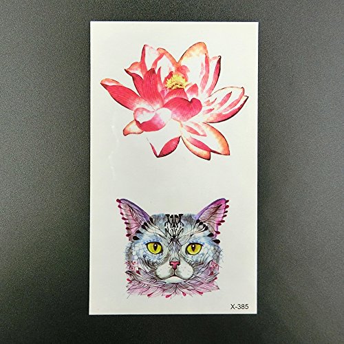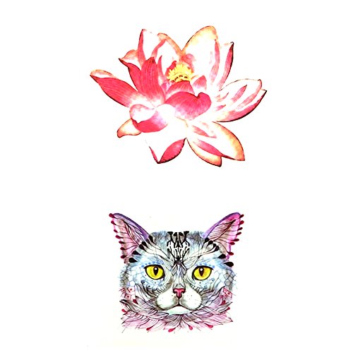 Oottati Small Cute Temporary Tattoo Cat Lotus (2 Sheets)