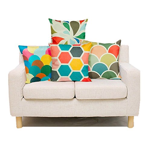 E-Livingstyle 4-Pack/3 Pack Cotton Linen Sofa Home Decor Design Throw Pillow Case Cushion Covers Square 18 Inch (style 7)