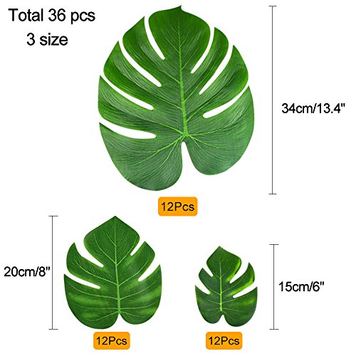 - Package included: 36pcs tropical plant leaves( large - 14"/35cm - 12pcs, Medium - 8"/20cm - 12pcs, Small - 6"/15cm - 12pcs )