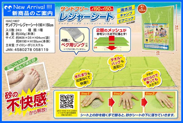 ●2層のメッシュが砂を下に落とす。2層のメッシュが砂をシート下に落とし、足の不快感から解放します。