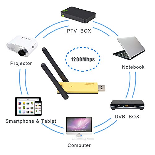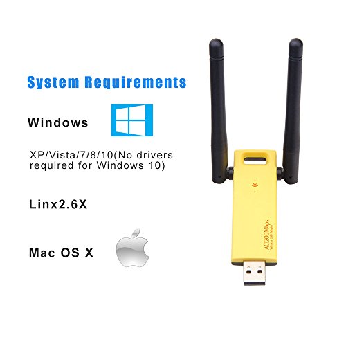 Studio : Slicemall Publisher : Slicemall Binding : Electronics Product Description Dual Band ( 5GHz 866Mbps or 2.4GHz 300Mbps ). Wireless USB Wifi Adapter for PC / Desktop / Laptop / Tablet, supports Windows 10/8/7//XP/Mac/Linux ( No drivers required for Windows 10 ) Supports 802.11ac standard Compatible with 802.11b / g / n wireless devices Transfer rate: 2.4GHz/300Mbps, 5GHz/866Mbps Supports WPA / WPA2 / WEP / 802.1X / WMM encryption Operation system: Windows XP / 7 / 8 / 10 / mac / Linux (no need of driver for windows 10) Supports WPS button High cost ratio, strong anti - interference ability and quick transmission speed, are what you can get from the product! Do not hesitate,use it to open a new era of your wifi. 0 |