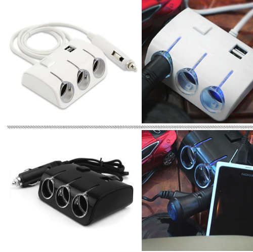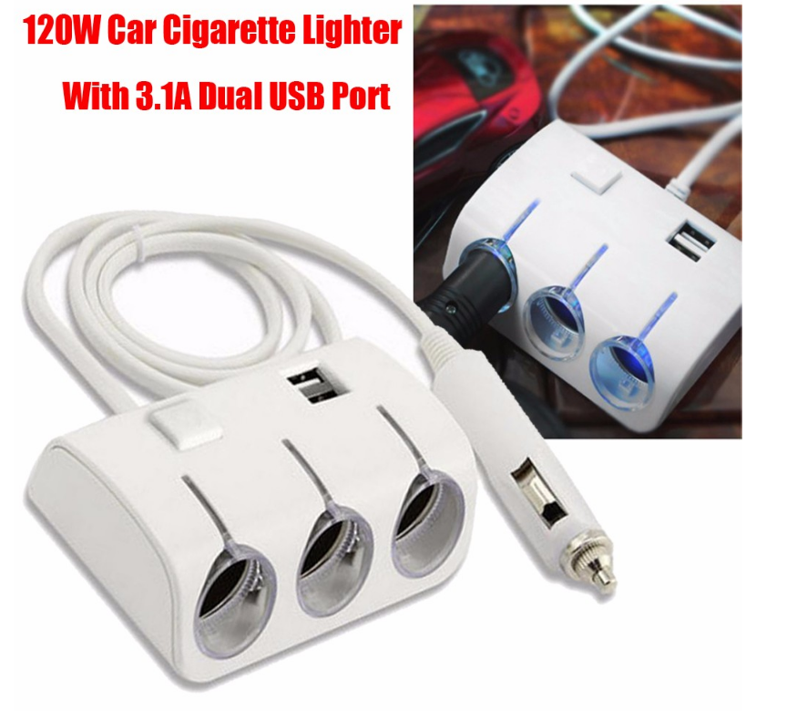 1 to 3 Ways Universal Car Cigarette Lighter Sockets Splitter Power Adapter Dual USB Charger 3.1A Output For All Phone And iPad