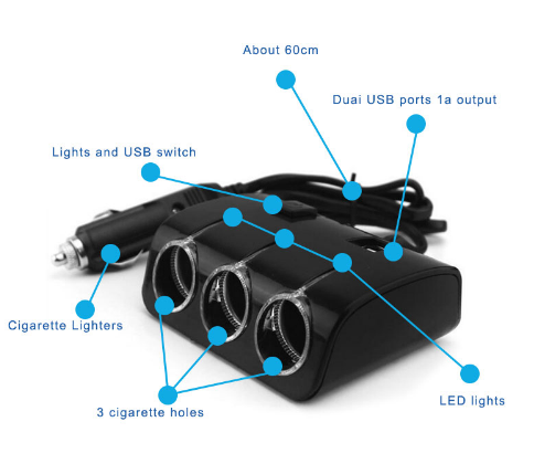 3 way cigarette lighter, safe and convenient.
