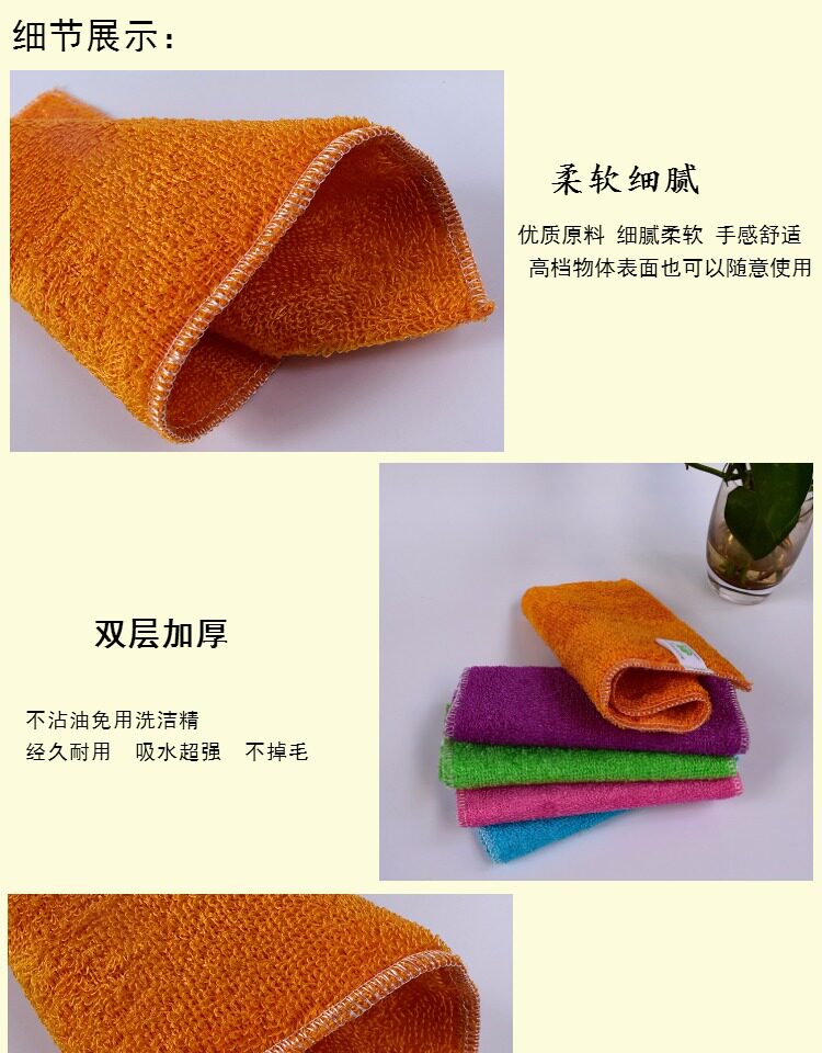 家用厨房清洁加厚大号竹纤维韩国洗洁巾不粘油抹布洗碗布双层