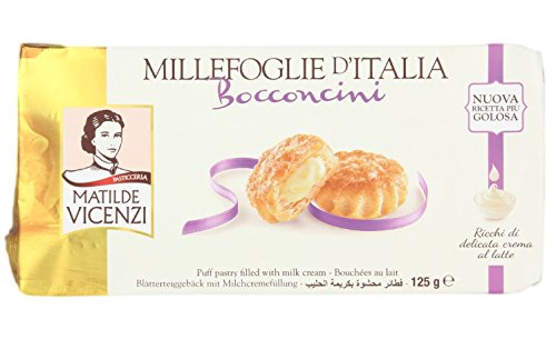 Vicenzi: " Millefoglie d' Italia Bocconcini " Puffy pastry filled with milk cream 125 gr - pack of 4 - total 17.63 oz [ Italian Import ]