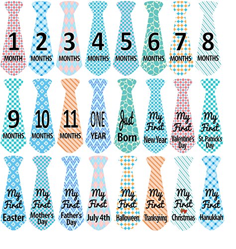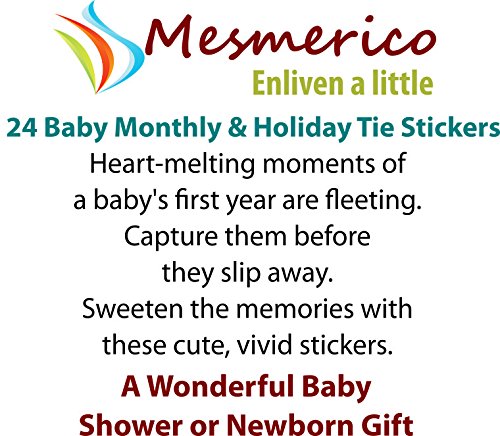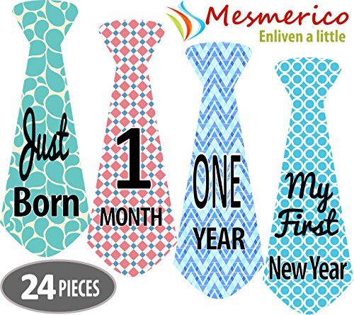 NEW! Mesmerico 24 Baby Monthly Holiday Tie Necktie Stickers - Baby Boy First Year Month Age Growth Milestones - Month Stickers for Baby Onesie Belly...