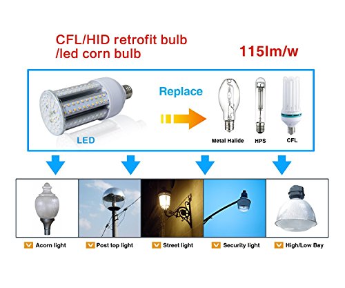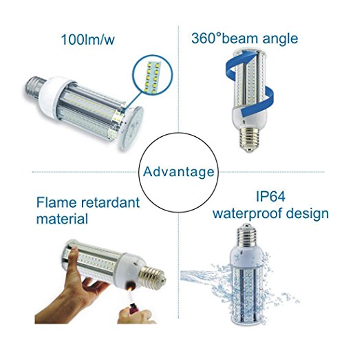 AliTronics 20w Led Corn Bulb,Super Bright 2100 lumen,5 years warranty,Replace CFL 100w or HID bulb 90w ,5000k White, Ac100-277v , Used in Outdoor Post Top,Wall Light,Bollard,garden Light