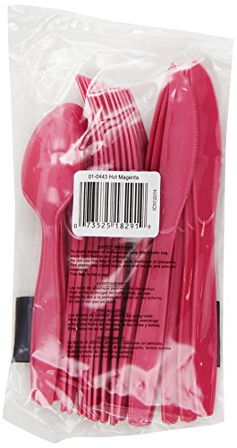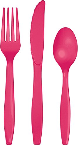 Creative Converting Premium Plastic Cutlery (Fork, Spoon, Knife) Assortment, Hot Magenta Color, Package Of 24, (Pack of 12)