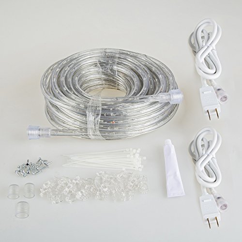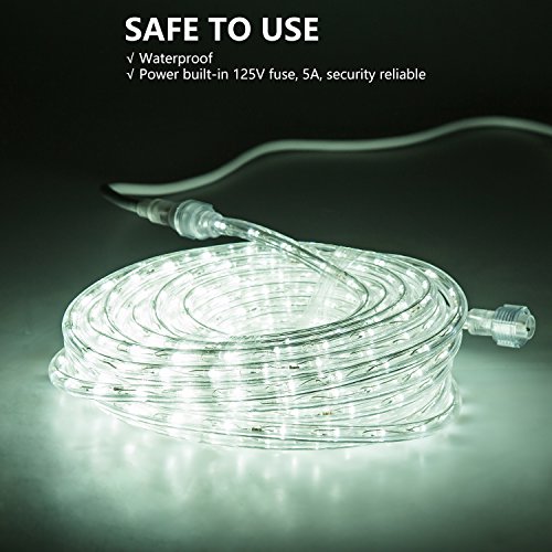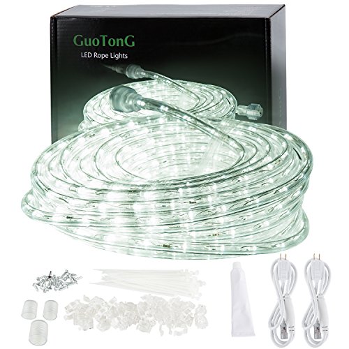 GuoTonG 50ft/15m Plugin Rope Lights, 540 Daylight White LEDs, 110V, 2 Wire, Waterproof, Connectable, Power Socket Connector Fuse Holder, Indoor/Outdoor Use, Ideal for Backyards, Decorative Lighting