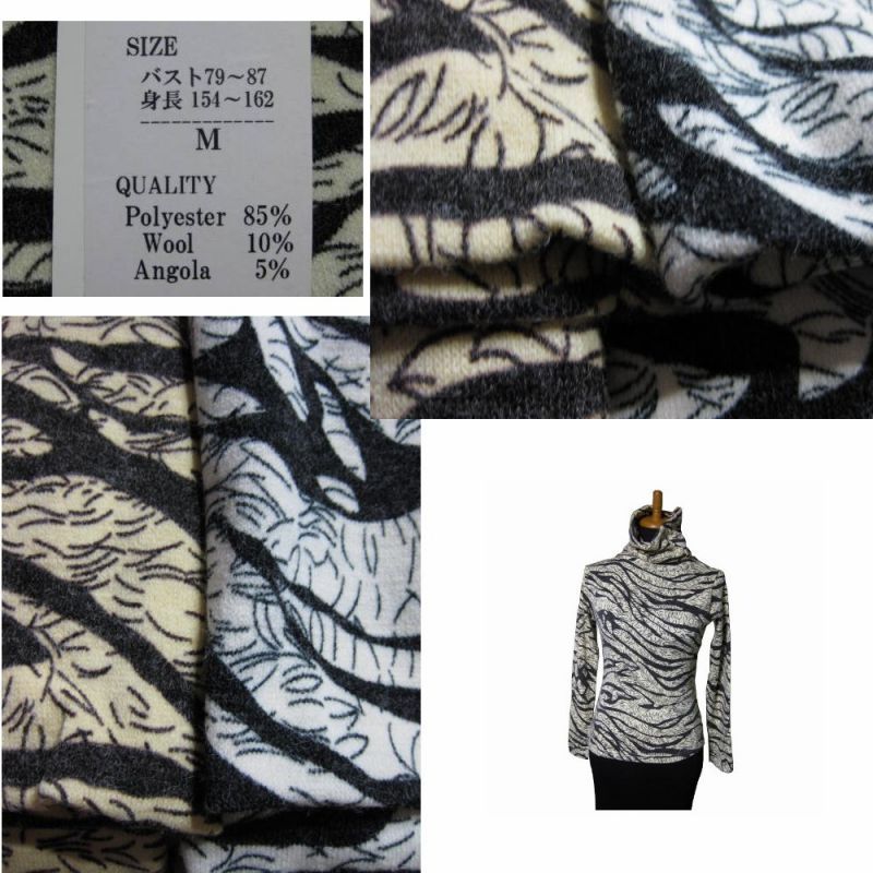 ニット ニットソー タートルネック 長袖 アニマル カットソー