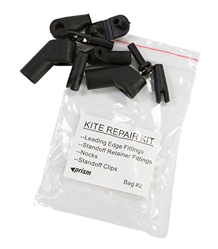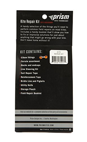 COMPLETE DO-IT-YOURSELF REPAIRS KIT - This kit comes with everything you need: Tedlar sail repair tape, adhesive-backed cloth sail patches, assorted spar ferrules, elbow fittings, wingtip nocks, and standoff fittings, bridle line and pigtails, a razor knife, sleeving kit for broken flying lines, Prism instruction booklet, and drawstring travel pouch.