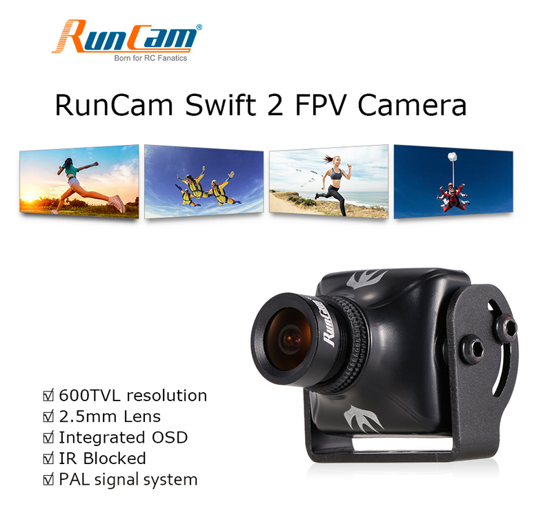 RunCam Swift 2 600TVL 2.5mm Lens FPV Camera OSD w/ IR Blocked PAL for QAV250 Racing Drone Quadcopter Aerial Photography