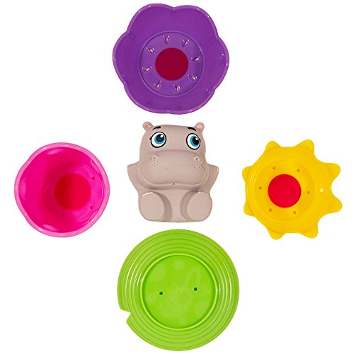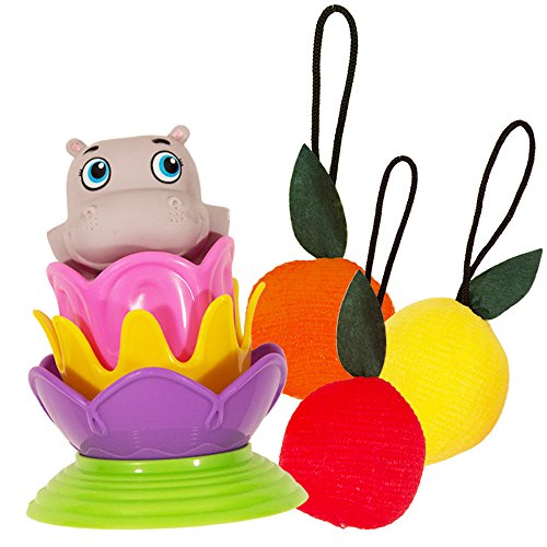 Garanimals Magic Color Stacking Cups Bath Toys Set for Toddlers and Kids -- Hippo Bath Squirter, Bath Stacking Cups and Fruit Sponges! Includes hippo bath toy squirter. This adorable hippo squirts water and can sit inside the stacker. Includes 4 magic color stackers -- watch images appear in these bath stacking cups when you add warm water. Munchkin bath toys design -- three bath stacking cups and a sturdy base. Includes 3 fruit bath sponges -- lemon, orange and cherry. These soft bath scrubbers are a fun way to clean your little one. Gentle and soft fruit bath toys for healty and vibrant skin. 8 Peices total, provide hours of fun for kids and toddlers as they stack, nest, strain, squirt, pou and even watch images magically appear.Feature