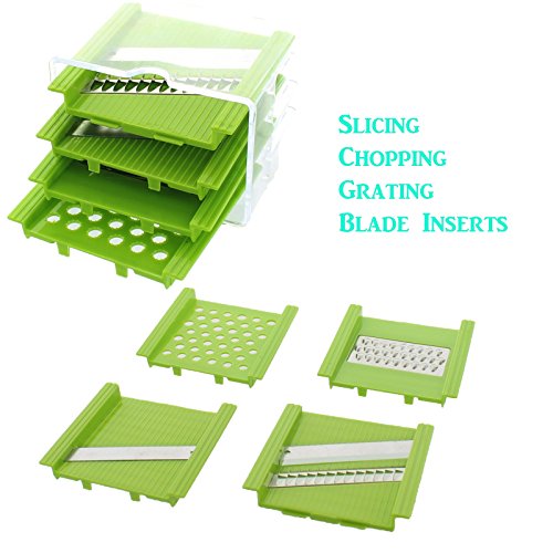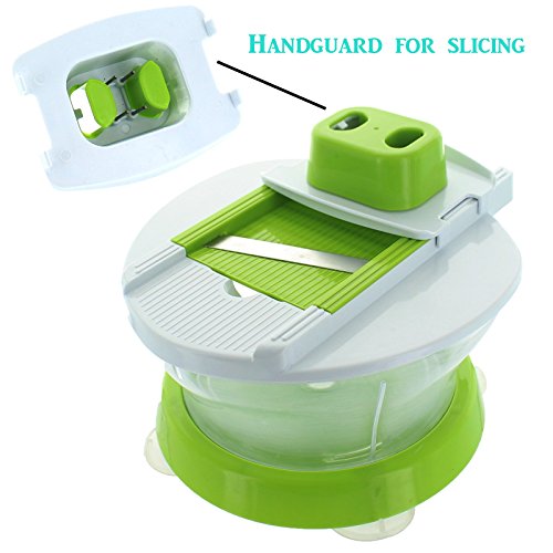 Easy to use – this all-in-one food processor is a specially designed machine that allows you to cut, slice, chop, grate, mix and store almost any kind of vegetable, cheese, or meat, with speed and precision. Cut preparation time - it can turn food preparation from a time consuming nightmare into any foodies dream come true. From apples to zucchini or salsa to salami, it can do it all! Slicing, chopping, grating, mincing - put the bowl onto the suction base and twist it clockwise to lock them together. Attach the lid and insert the desired attachment, ensuring that it follows the contours of the lid. Use the safety holder to protect your hands when slicing and grating. Spinning & blending - put the bowl onto the suction base and twist it clockwise to lock them together. Put the desired attachment onto the center spike of the bowl, then add ingredients. Place the lid on the bowl, ensuring that it locks securely. Insert the handle into the lid and rotate it clockwise. Egg separator - secure the bowl to the suction base. Put the desired attachment onto the center spike of the bowl, then add any desired ingredients. Place the lid on the bowl, ensuring that it locks securely. Carefully crack an egg and place it on the egg separator allowing the egg white to run into the bow. Slide the egg separator backwards to remove it and discard the egg yolk as desired. Replace the egg separator before mixing. Easy to clean - it is simple and easy to use and all parts are dishwasher safe. Package includes: slicing, chopping, and grating inserts spinning tri-blade chopper salad spinning basket egg separator air tight lid for instant food storage.Feature