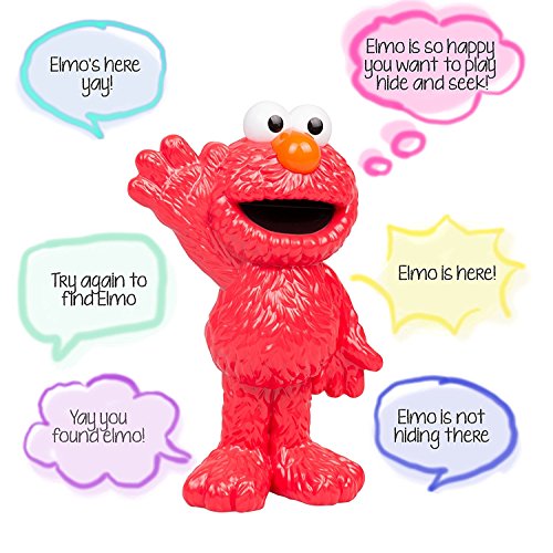 Elmo Hide and Seek Game - Includes Hint Cards and Toy Figure with Sound - Based on a timeless play pattern, Elmo "Hide & Seek" is a refreshing update to the beloved classic and features a sturdy character doll that chirps out little hints when hidden. One player or parent hides Elmo, while the others use the enclosed clue cards to find him. A cheerful "I am here, I am here!" helps guide the players to the secret hiding place. Children as young as 6 months can also enjoy this game by playing a version of peekaboo--just hide Elmo under a cloth, turn the sound on, and let your infant look for Elmo. So many ways to play and learn in one game set! AAA batteries not included.Feature