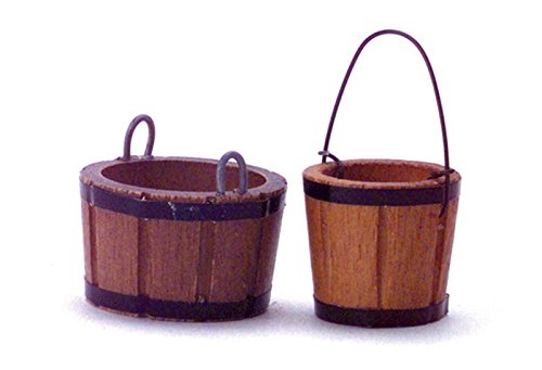 -. Title : Dollhouse Miniature Set of 2 Wooden Buckets