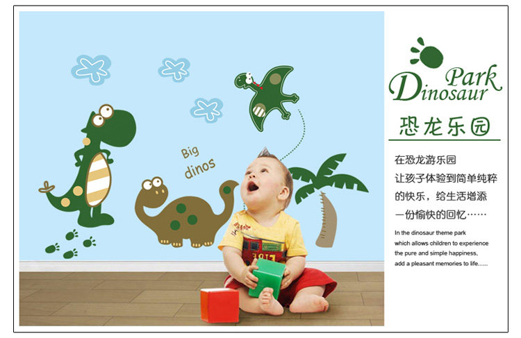 墙贴 儿童墙贴 儿童房背景卧室卡通墙贴纸 可爱小恐龙