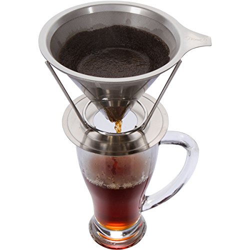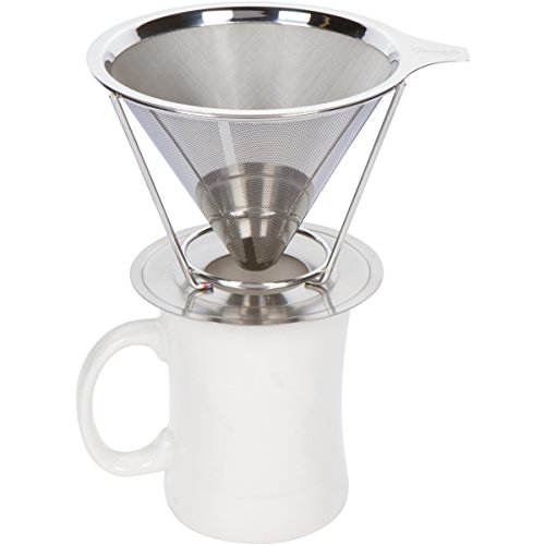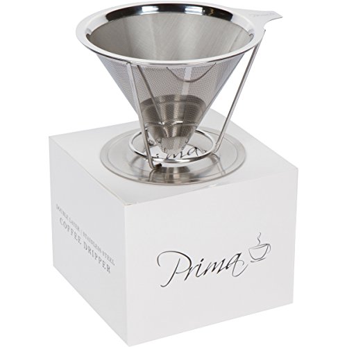 -. Brand : Prima Home & Kitchen -. Color : Silver -. EAN : 0646437695626 -. Feature : The Absolute Finest Quality: This laser-cut 18/10 stainless steel ultra-fine double filter ensures no grounds make their way into your coffee. / A Barista Grade Brew: Makes a perfectly full and flavorful coffee each and every time. / Say Goodbye to Paper: Our coffee dripper is 100% reusable, and is a great alternative to messy disposable paper filters. / Hassle-Free Satisfaction Guarantee: If you're not completely satisfied with your dripper, we will refund your entire purchase, no questions asked! -. Label : Prima Home & Kitchen -. Manufacturer : Prima Home & Kitchen -. PackageQuantity : 1 -. ProductGroup : Kitchen -. ProductTypeName : KITCHEN -. Publisher : Prima Home & Kitchen -. Studio : Prima Home & Kitchen -. Title : Prima Stainless Steel Pour Over Coffee Dripper: The Reusable Double Layer Coffee Filter and Brewer with Coffee Stand (Serves 1-4 Cups) -. UPC : 646437695626