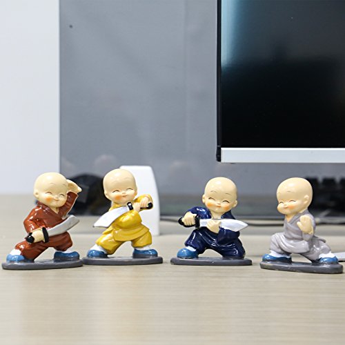 MAISHO 4pcs/Set Resin Young Monk Figure Kung Fu Toy Doll Creative Home Decorations Car Decoration