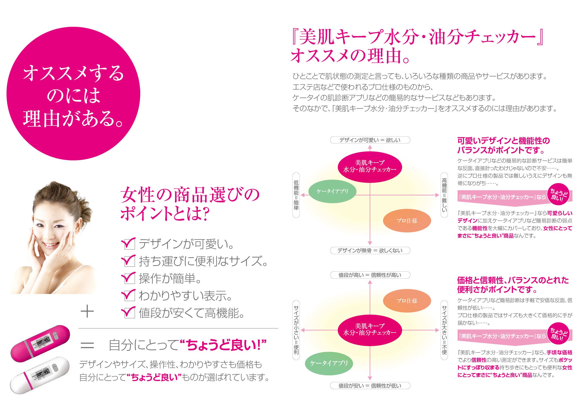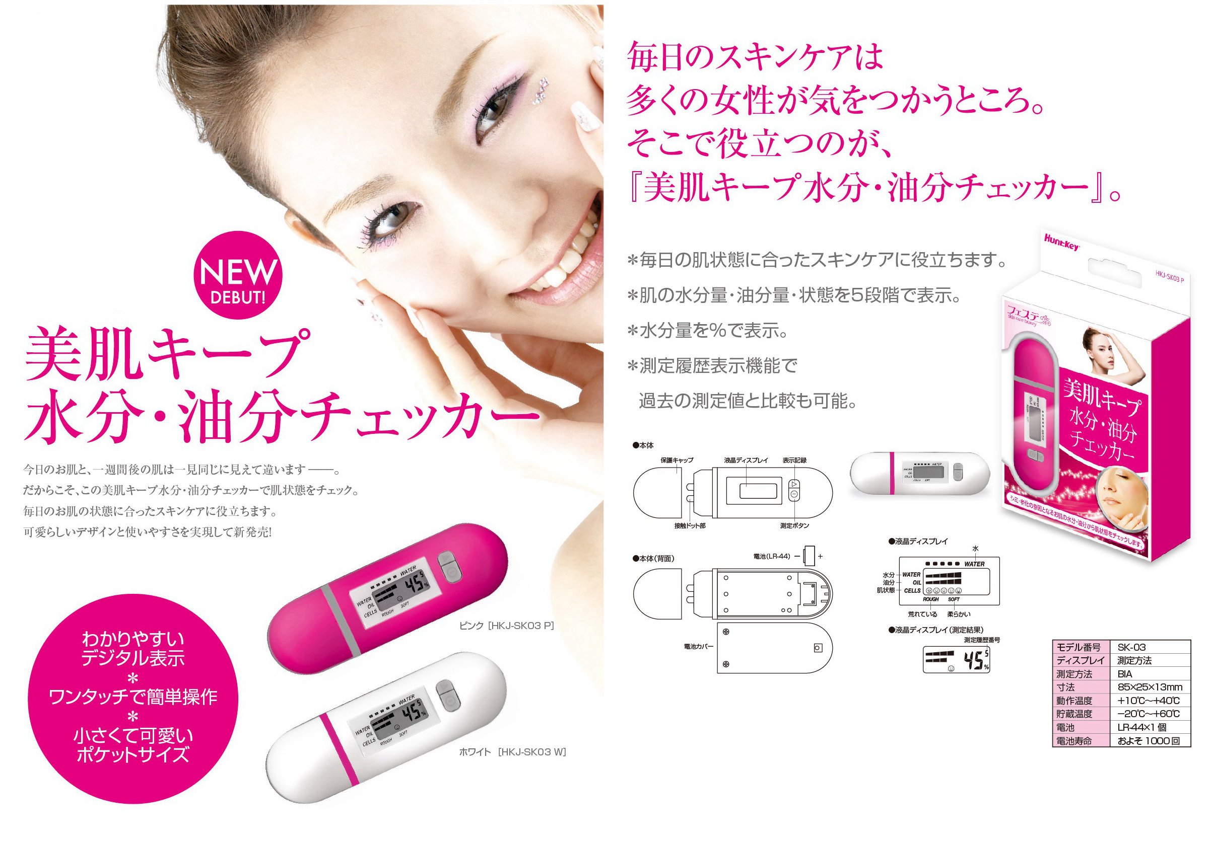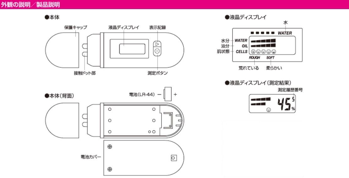 ● Compact checker that allows you to easily measure the condition of your skin.