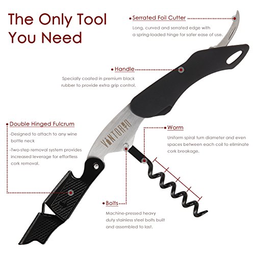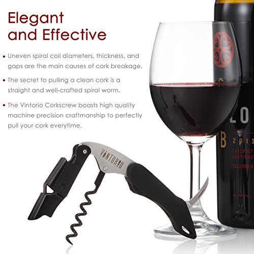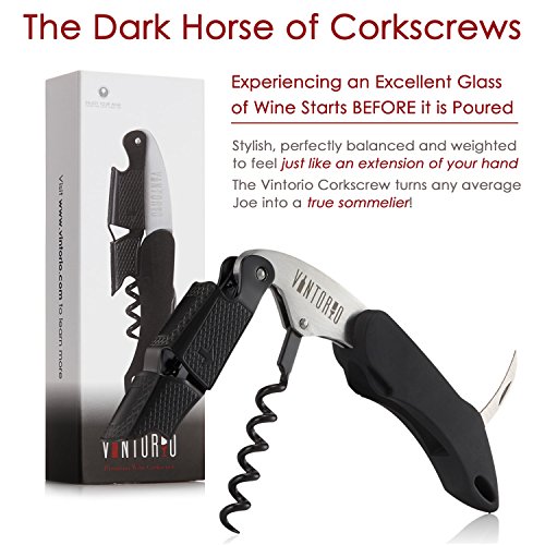 Studio : Vintorio Publisher : Vintorio Product Description The Vintorio Waiter's Corkscrew is elegantly designed and made of durable materials. It comes with a special rubber coated handle for extra grip and ease of use. Confidently open your bottle of wine anywhere with the Vintorio Waiter's Corkscrew. 0