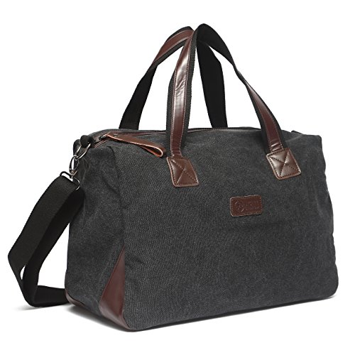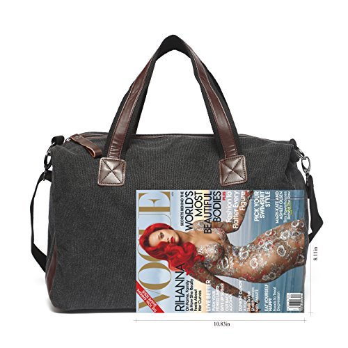 -. Feature : 16 oz washed canvas, high density and durable / Durable top handle and adjustable shoulder strap / Casual style, leather embellishment, brass buttons hardware / General use for travel, school, going-out, and sport and so on / Approx. Dimension: 16.93'' (L) X 7.87'' (W) X 14.57'' (H), large enough for your daily essentials