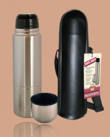 - Stainless steel top doubles as drinking cup