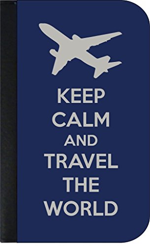 -. Title : Keep Calm and Travel the World-Navy/Slate TM Leather and Suede Look Passport Cover with Double-Sided Design Made in the USA