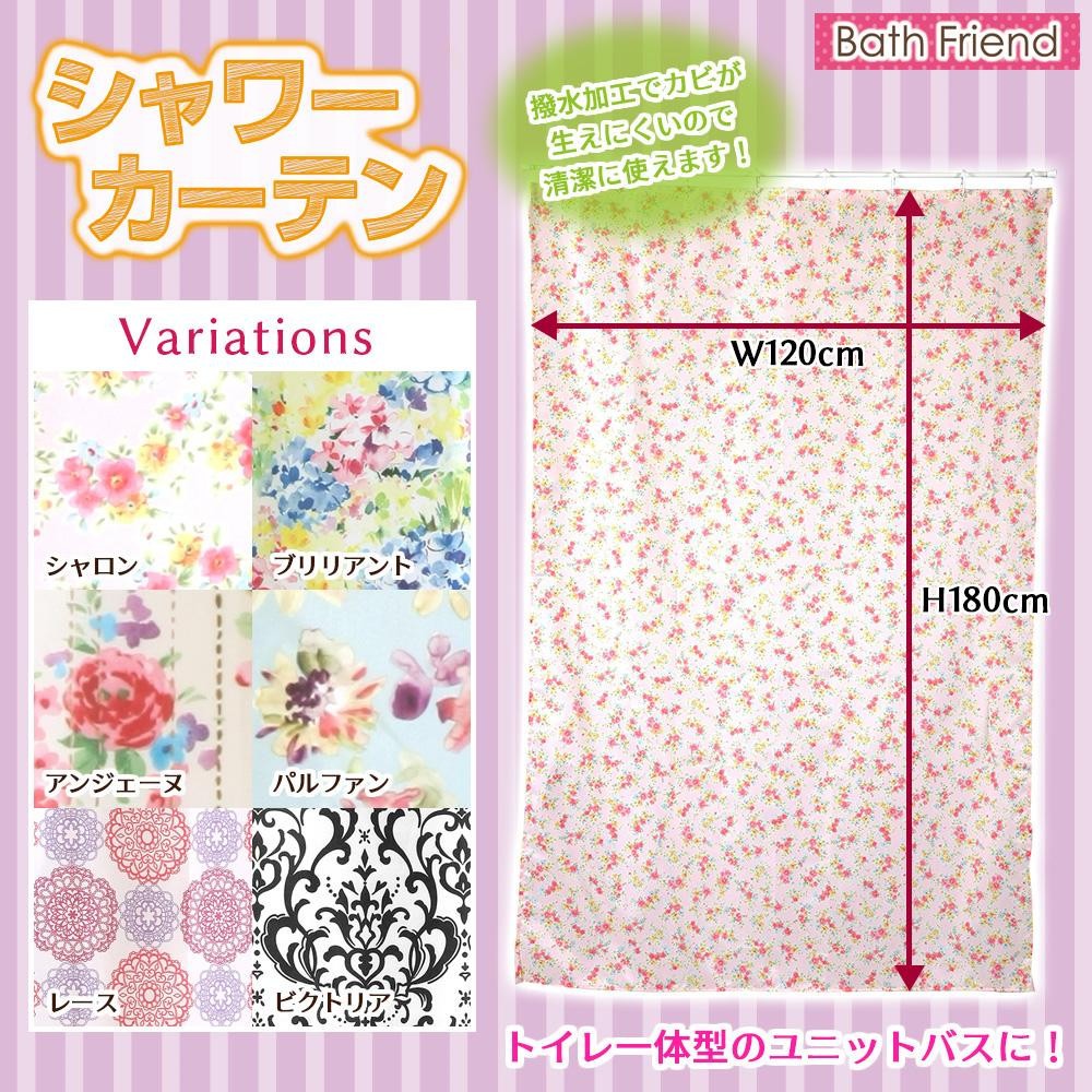 お気に入りのカーテンに包まれてとっても幸せなバスタイムを過ごしませんか? 製造国:中国 素材・材質:プリント生地:ポリエステル100%リング:ポリ塩化ビニル 商品サイズ:(約)幅120×高さ180cm、リング:直径10mm ※サプライヤー直送品 ご注文後3~4営業日後の出荷となります【商品名】バスフレンド シャワーカーテン シャロン