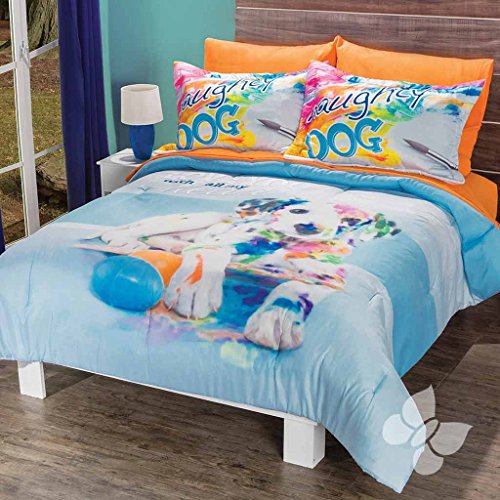 Product DescriptionDalmatians Dog Teens Comforter Include: 1 Reversible Comforter 1 Sham, 1 flat sheet, 1 fitted sheet, 2 pillowcase Size: Full0