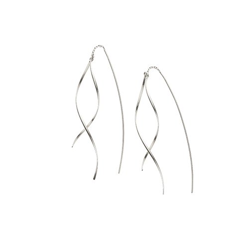 -. Feature : K10WG / 全長:縦約 107.0mm / やわらかなカーブを描くモチーフが揺れるモダンな印象のチェーンピアス。つややかな地金の質感が光を反射して横顔を華やかに。見る角度によって表情を変える個性的なモチーフがコーディネートにスパイスを加えてくれそう。