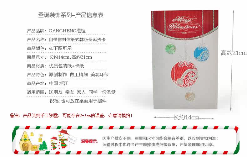 【Name】 Hong Kong Heng Christmas envelope greeting card 21x14cm fold three-dimensional Christmas wishing card Christmas cartoon gift paper card