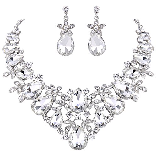-. Title : BriLove Women's Bohemian Boho Crystal Flower Leaf Vine Teardrop Statement Necklace Dangle Earrings Set
