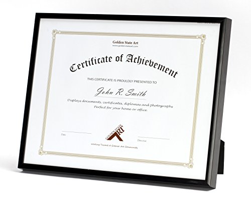 -. Binding : Kitchen -. Brand : Golden State Art -. Color : Black -. EAN : 4943893190778 -. Feature : Black Aluminum Photo frame with Real Glass / Frames 8.5x11 inch Document or Certificate- Photo Mat is NOT INCLUDED / Includes an easel stand for table-top display, and two hangers for portrait or landscape hanging option / A great way to display diplomas/certificates in the office or in the house / Black Aluminum photo frame makes a great graduate or personal gift -. IsAutographed : 0 -. Label : Golden State Art -. Manufacturer : Golden State Art -. Model : AAB8511M-01-S-SF0298 -. PackageQuantity : 1 -. ProductGroup : Home -. ProductTypeName : HOME -. Publisher : Golden State Art -. Size : 8.5x11-Table top -. Studio : Golden State Art -. Title : Golden State Art, Metal Wall Photo Frame Collection, 8.5x11-Table top Aluminum Black Photo Frame with Real Glass
