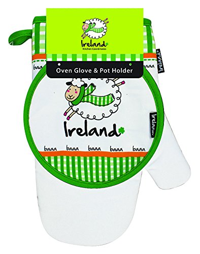 Oven Gloves & Pot Holder With Jumping Sheep And Ireland Text