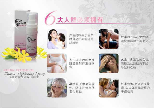 通过精油特殊有效成分,补充阴道细胞组织营养。修复阴道韧带组织的弹性,收紧阴道,杀菌抗炎症。消除性冷感,私处紧致,清洁子宫,改善夫妻生活,增进夫妻感情。