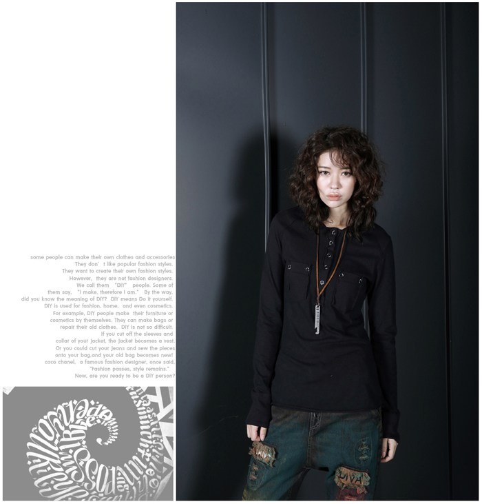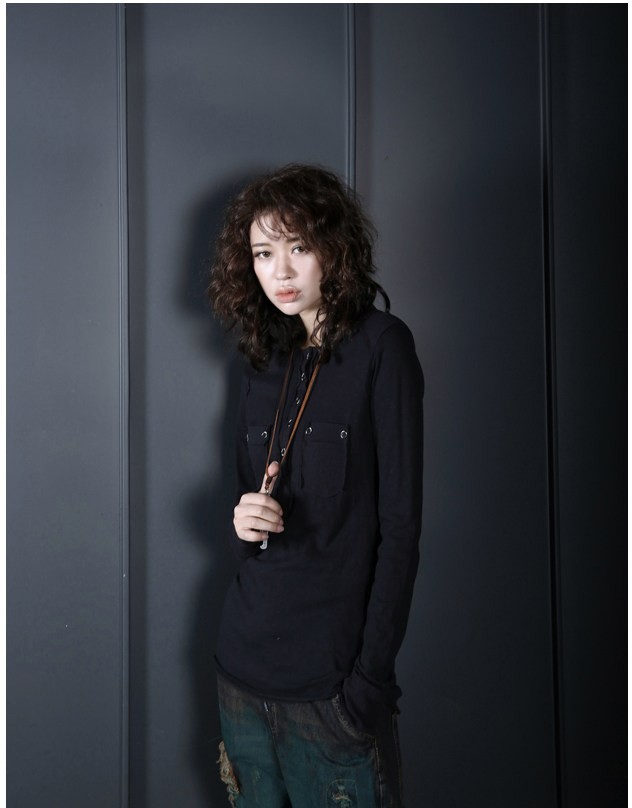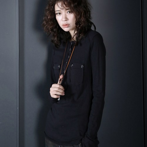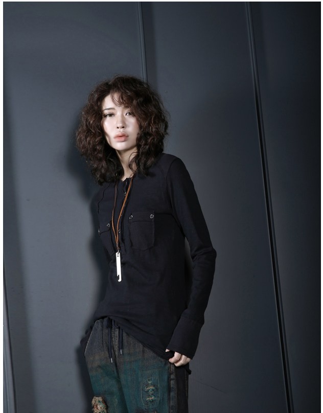 商品名:Tシャツ レディース 長袖 無地 ヘンリーネック 秋 2017 モード系 個性的 40代 ファッション