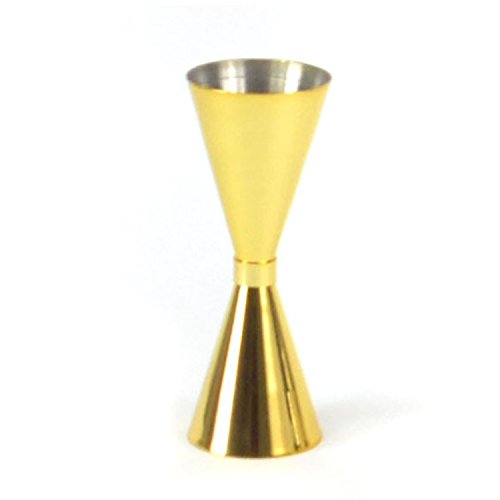 -. Feature : The gold double jigger featuring a slender, elegant design that provides efficiency and accuracy when dispensing spirits and alcohol for cocktail bars and clubs; / It is made of durable, premium stainless steel construction with a polished gold finish on the outside and a matted inside, and has a slim waist is decorated with a fine, golden coloured ribbon; / The jigger consists of two measure cups. Each cup is equipped with two small, fine measurement lines at the inside. / Due to the engraved measurement lines at the inside, so easily use this jigger even in dark light conditions; / Extend your bar equipment with this extraordinary, classy and generous jigger;