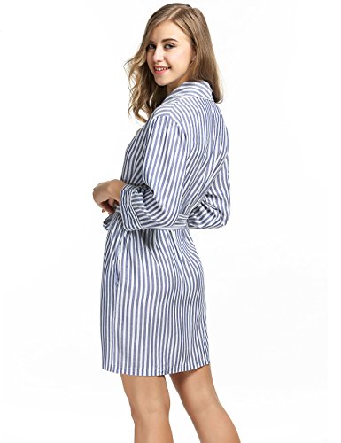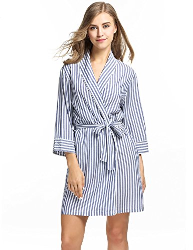 Product DescriptionHalife Women's Long Sleeve Striped Short Robe Lounge Sleepwear Kimono Bathrobe0