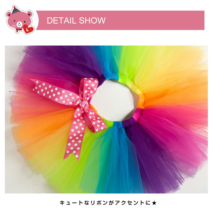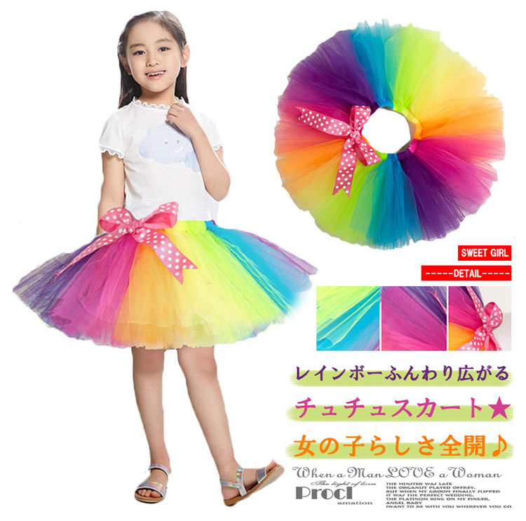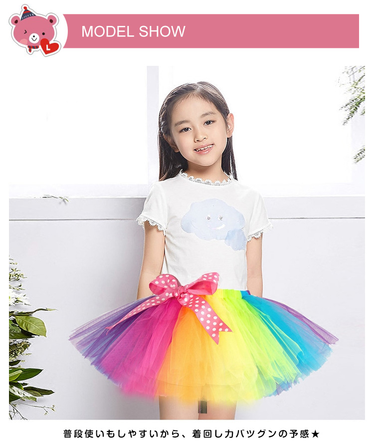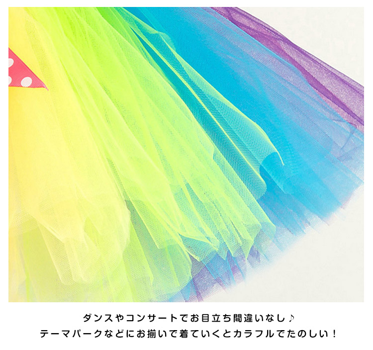 | レインボーふんわり広がるチュチュスカート★女の子らしさ全開♪普段使いもしやすいから、着回し力バツグンの予感★もちろん、コンサートにもテーマパークにもおススメです。 | |