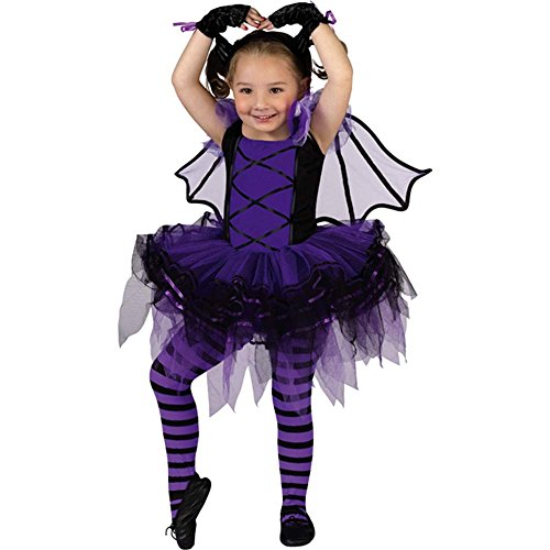 -. Binding : Apparel -. Brand : Fun World -. ClothingSize : One Size -. Color : Multicoloured -. Department : baby-girls -. Feature : Includes: Dress with attached tutu skirt and sequin trim, Wings, Bat ear headband, Glovelets / Tights and Shoes sold separately. Wings held on by elastic. / COLOR: Multicoloured / MATERIAL: Dress and Glovelets: 100% Polyester; Wings: 90% Polyester, 10% Metal Wire; Headband: 60% Polyester, 40% Plastic / REFERENCE NUMBER 114151 -. IsAdultProduct : 0 -. Label : Fun World -. Manufacturer : Fun World -. MPN : 114151fw -. NumberOfItems : 1 -. PackageQuantity : 1 -. PartNumber : 114151fw -. ProductGroup : Toy -. ProductTypeName : CHILDRENS_COSTUME -. Publisher : Fun World -. Size : One Size -. Studio : Fun World -. Title : Batarina Ballerina Toddler Costume